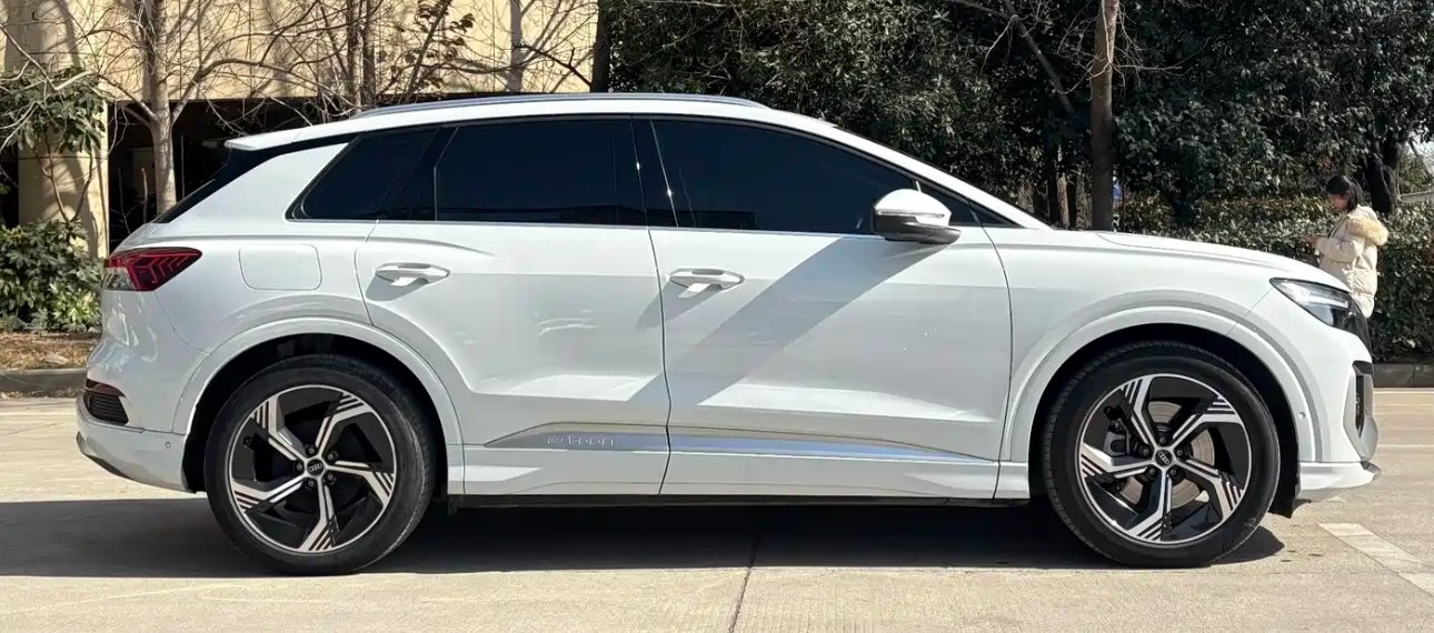 The 2022 Audi Q4 e-tron 40 e-tron Chuangjing is a compact pure electric SUV priced at 19,450 USD, registered in October 2022 with 30,000 km driven. Finished in white (0 ownership transfer), it features a 150kW rear motor (605km CLTC range), L2 ADAS, and an optional home charging pile. The vehicle has no accident history and offers high cost-effectiveness compared to its new car price (≈49,000 USD tax-in).