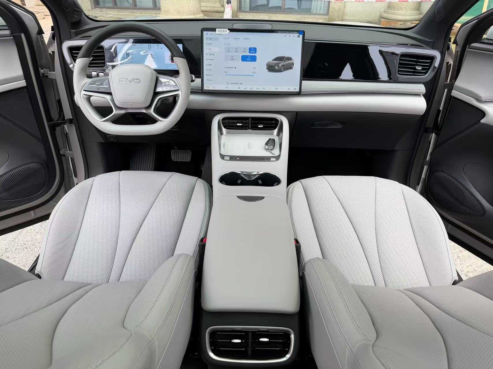 This is a 2025 BYD Sealion 06 DM-i 170 Leading Pro mid-size SUV, produced in July 2025. It features a plug-in hybrid system with a 1.5L Atkinson cycle engine and a 160kW electric motor, delivering a CLTC combined range of 1705km and a pure electric range of ~170km, ideal for both long-distance travel and urban commuting. Registered in August 2025, the vehicle has only 1174km on the odometer and remains in original paint condition with a gray exterior and beige interior.