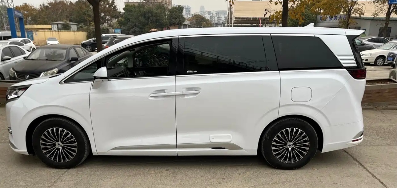 This 2024 Denza D9 DM-i 980 AWD Premium is a like-new plug-in hybrid MPV with only 6,000 km on the odometer. It features a 1.5T turbo engine paired with dual electric motors, delivering a pure electric range of 190 km and a 0-100 km/h acceleration in just 7.9 seconds. With 7 seats, 5 doors, and a 40.06kWh battery.