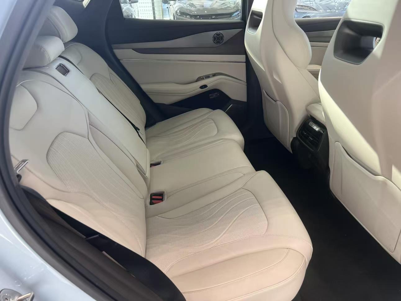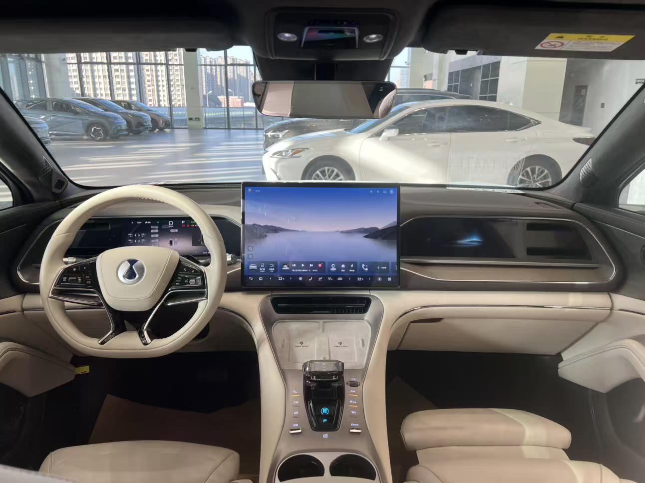 This Denza N7 2024 630 4WD Smart Drive MAX Edition was manufactured in April 2024 and registered in May 2024, with 19,959km on the odometer and in original paint condition. It features a blue exterior paired with a beige interior, powered by a BEV 4WD system delivering 630km CLTC range and 390kW total power, making it a tech-savvy and high-performance mid-size electric SUV.