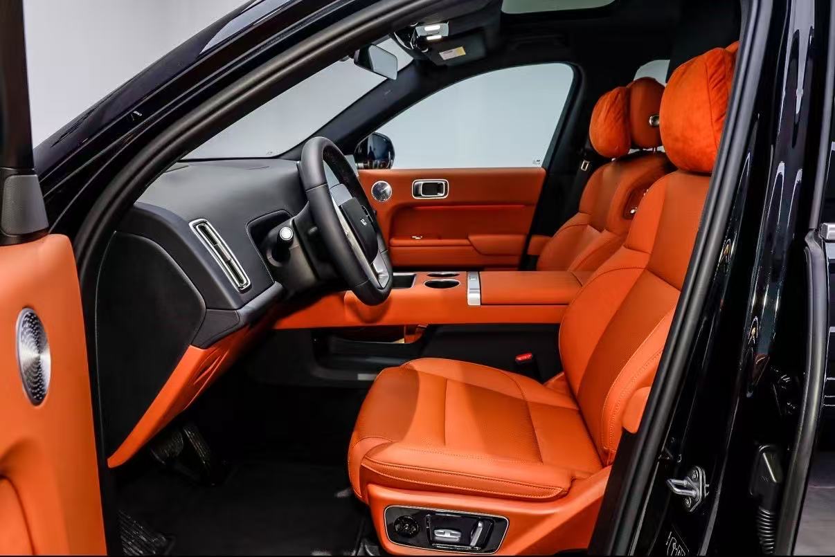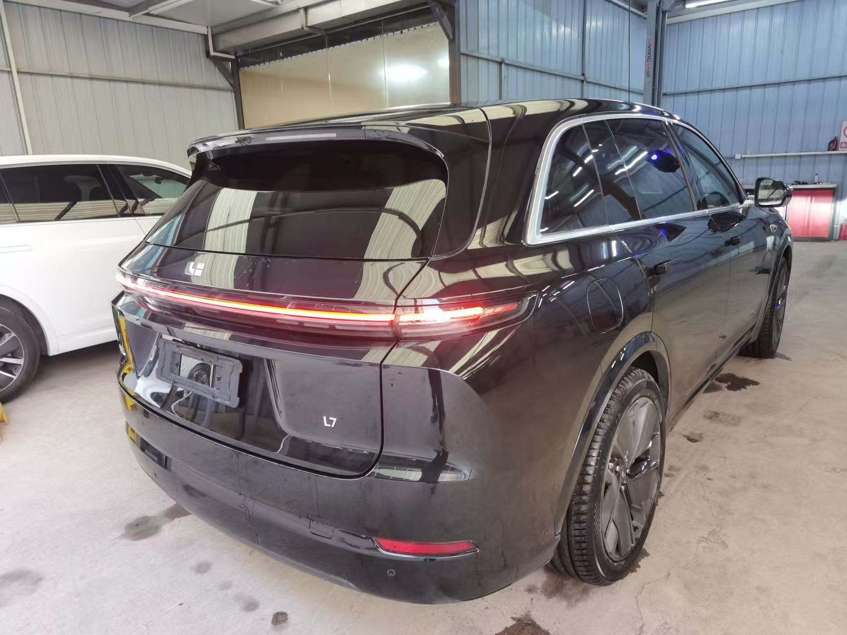 Li Auto L7 2025 Ultra Smart Upgrade Edition, produced and registered in 2025, original paint with only front bumper repainted, 8345km driven. Black exterior paired with orange interior, EREV system balances long range and EV experience, equipped with full-stack ADAS and air suspension, ideal for family long-distance travel.
