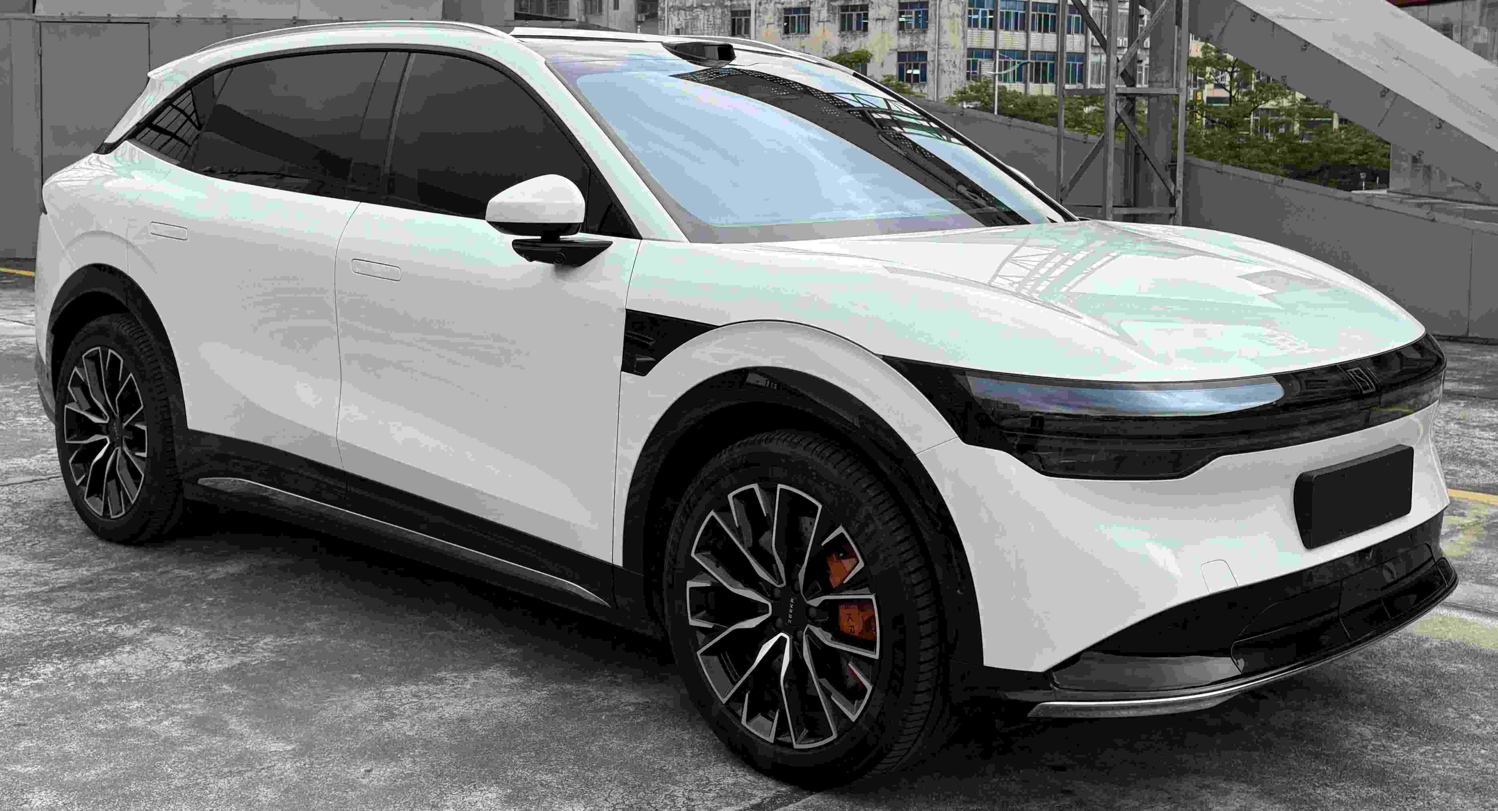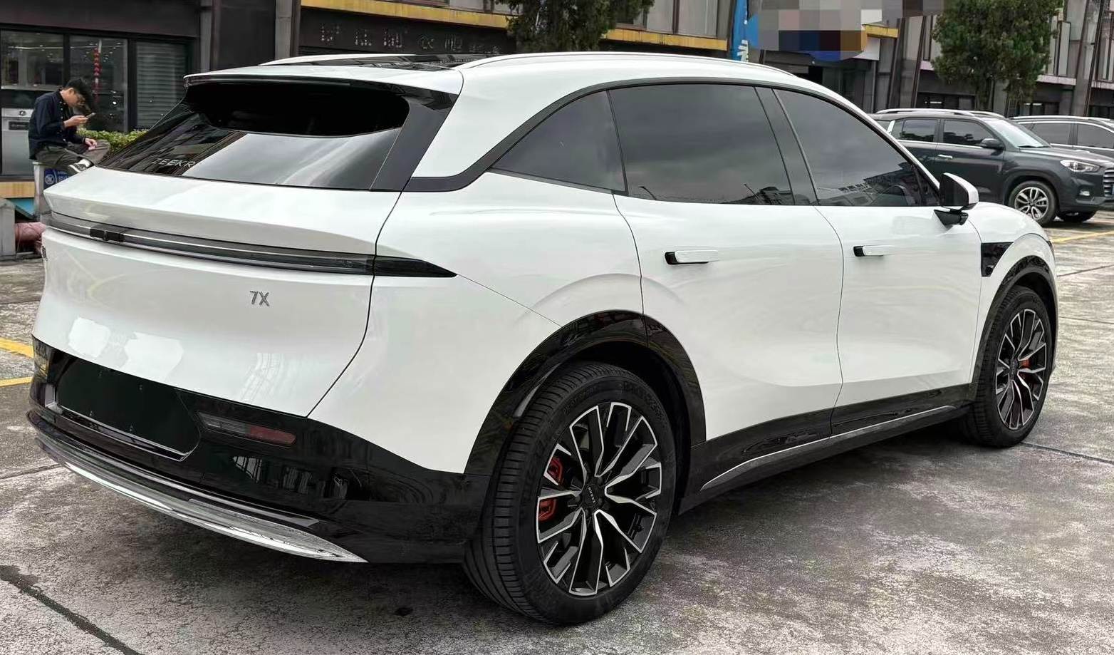 The 2025 ZEEKR 7X 100kWh Long Range 4WD ADAS Edition is a mid-size luxury pure electric SUV priced at 30,650 USD, manufactured in September 2024 and registered in October 2024 with 23,886 km driven. Finished in white with a beige interior (original paint), it features a 100kWh battery (702km CLTC range), 370kW dual-motor 4WD, optional 20-inch wheels with orange calipers and a light curtain kit, combining performance, intelligence and luxury.